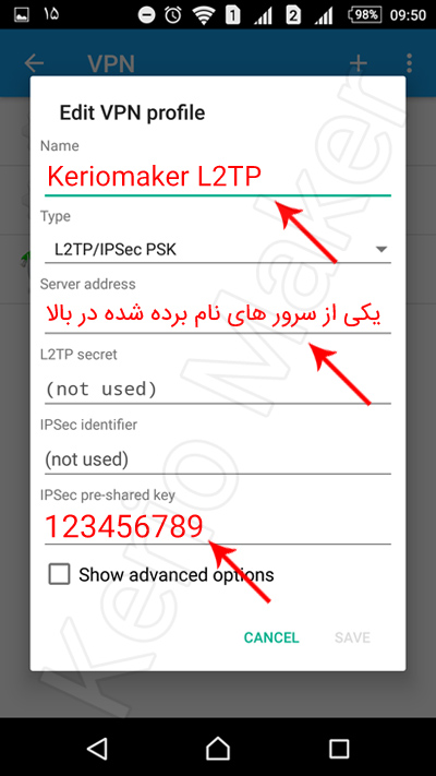 برای راه اندازی وی پی ان L2TP در سیستم عامل Android طبق مراحل زیر عمل کنید.