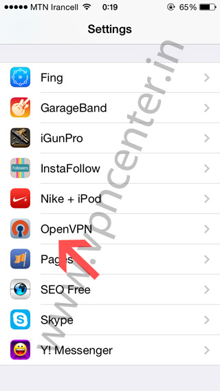 گوشی شده و مطابق شکل زیر OpenVPN را انتخاب کنید.