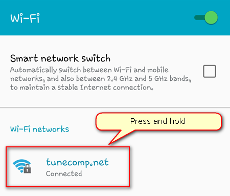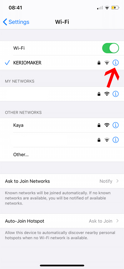 ۱- به قسمت Settings و سپس Wi-Fi رفته و روی کانکشنی که با آن به اینترنت وصل هستید چند ثانیه نگه دارید.