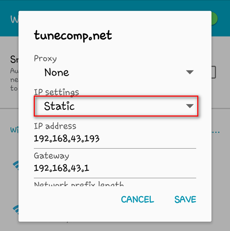 ۳- در قسمت IP settings گزینه Static را انتخاب کنید.
