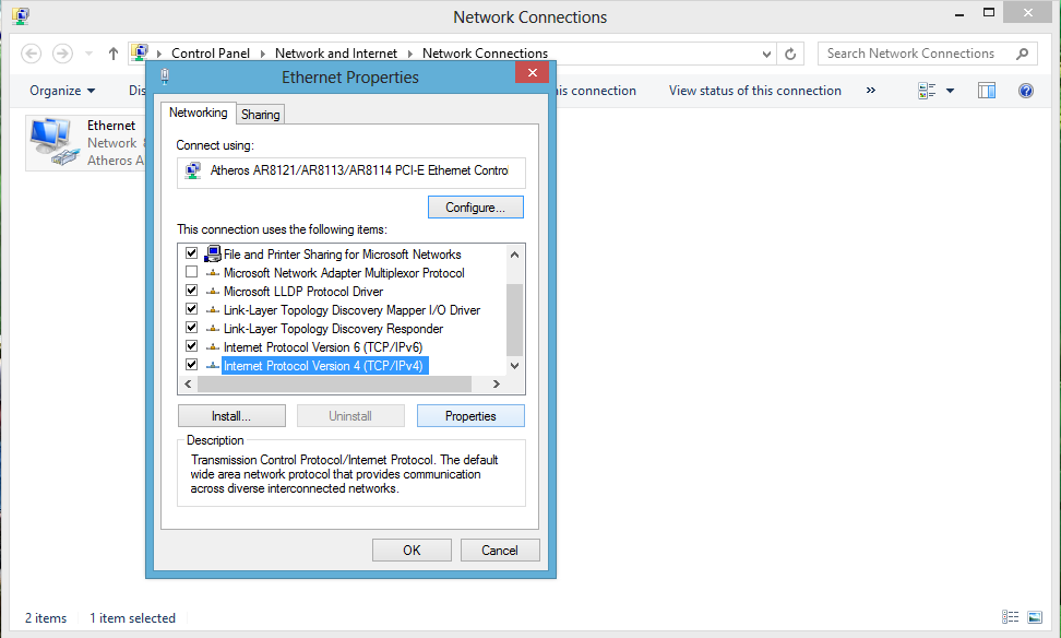 4 . روی Internet Protocol Version 4 کلیک کرده و Properties رو بزنید .